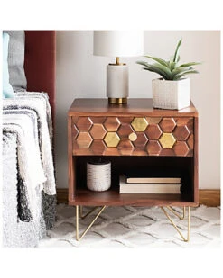Safavieh Mina Modern Coastal 2-Drawer 25in Bamboo Nightstand Home