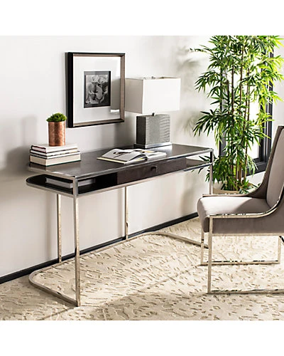 - Design details: Bring refined minimalist style to the home office with this sleek contemporary desk. A design investment, its crafted with oak veneer that features a rich espresso finish to create depth and warmth. Powerful bold steel angles make it a modern marvel.