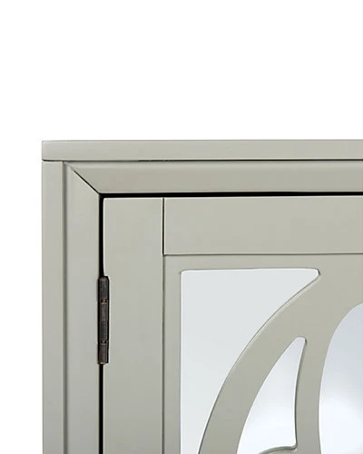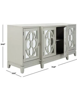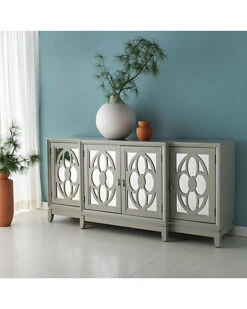 - Designed to highlight its fine craftsmanship, this gracious mirrored sideboard is a captivating focal point in any dining room. Ideal for entertaining, its expansive wood cabinets are adorned with chic mirrors ornately framed by a classic cut-out pattern.