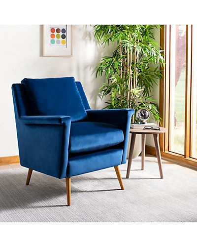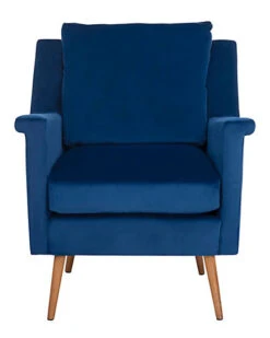 - Design details: Fashion-forward and endlessly chic, the mod style of this mid-century armchair elevates any living room. Welcoming and cozy, its luxurious velvet upholstery pops with its vibrant navy hue. The natural beauty of its solid oak retro legs makes it a classic.