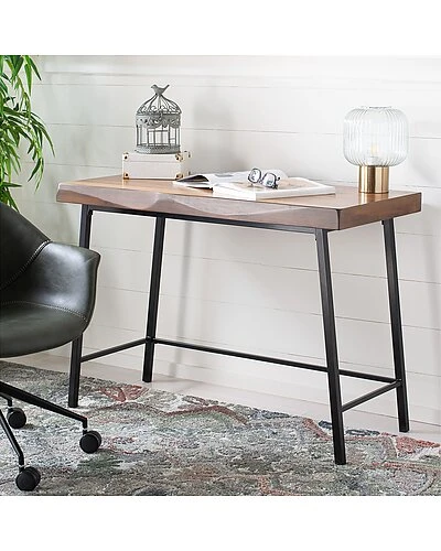 - Design details: a contemporary take on retro industrial sawhorse styling, this bernhart desk is both sophisticated and utilitarian. bernharts rich walnut finish adds a touch of warmth to the stark lines of its angled black legs, perfectly balancing the look.