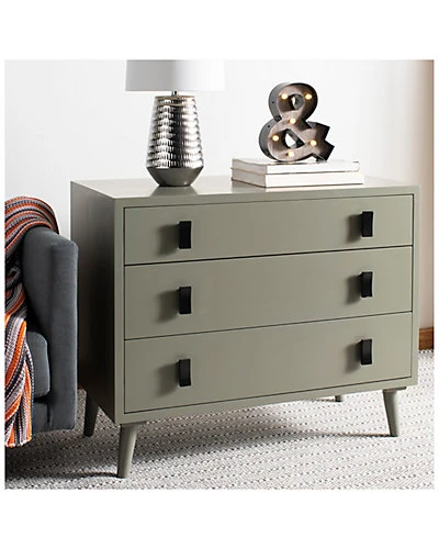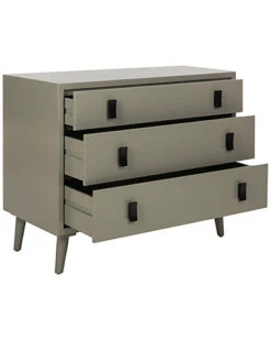 - Design details: This 3-drawer chest offers a contemporary spin on vintage style. Ideal as a nightstand or as a chest in the living room, its neutral dark grey finish complements any decor. Its black metal hardware adds a touch of industrial luxe style to its drawers.