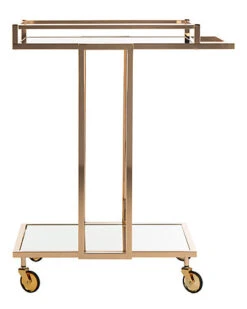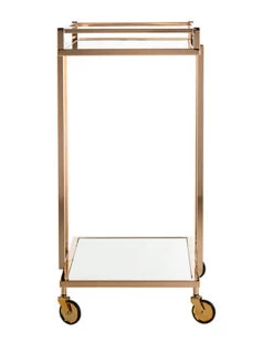 - Design details: Whether its transporting hors d’oeuvres or a melange of spirits at cocktail hour, this contemporary 2-tier rectangle bar cart is the doyenne of entertaining. Designed with a radiant gold finish and mirrored layers, it instantly upgrades any room.