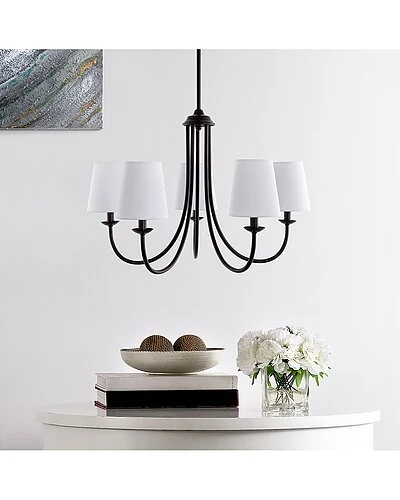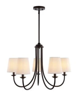 - Design details: This Darryn Chandelier is the perfect finishing touch to any well-appointed dining room or boudoir. Darryns classic candelabra silhouette is given a contemporary update with white fabric shades that diffuse a soft glow from its five lights, and an oil-rubbed bronze finish makes Darryn absolutely timeless.