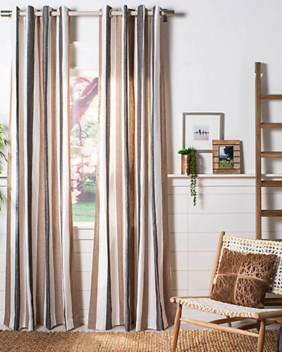 - Design details: Larri Window Panels recall the classic style and charm of smartly colored striped window treatments. Made using 100% linen fabric and colored in taupe, beige, and dark grey for a superb blend of engaging hues on subtle textures. Finished with polished metal grommets for easy installation. Window Panels Are One To A Package.
