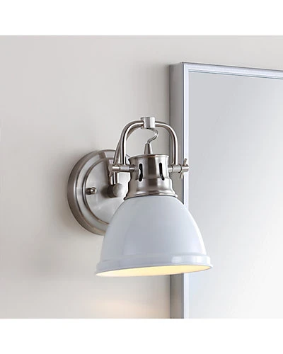 - Design details: iron base; white metal shade; requires 40-watt/CFL 13-watt/or LED 9-watt bulbs; bulbs included