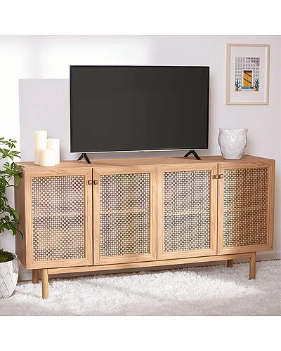 - Traditional splendor meets contemporary chic in this Piran Media Stand. Pirans four oak finished doors are given a royal treatment with gold latticed mesh for artistic contrast that creates a dramatic decorative focal point in any entertainment area, while two shelves provide ample storage space.