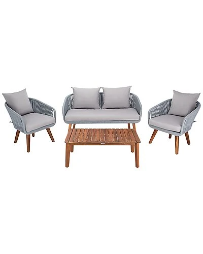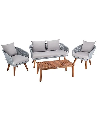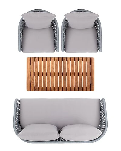 - Host the chicest soiree of the season with this contemporary 4-piece living set. Inspired by exotic tropical getaways, the gentle curves of its sumptuous settee, two deluxe armchairs and table are designed with rope and rich natural acacia wood.
