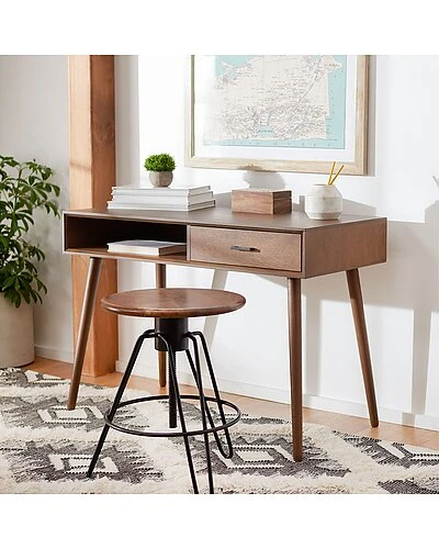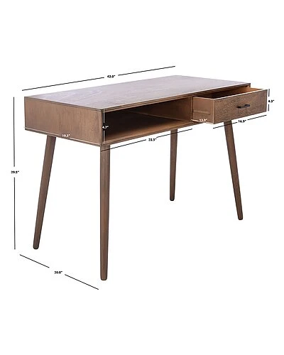 - This Remy Writing Desk upgrades any office with a hint of Mid Century charm. Remys splayed legs provide a subtle sense of depth and motion that revitalizes workspace decor, and its open shelf and single drawer are perfect for storing your 9 to 5 essentials. A rich brown finish completes the look.