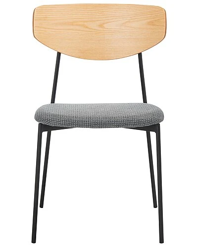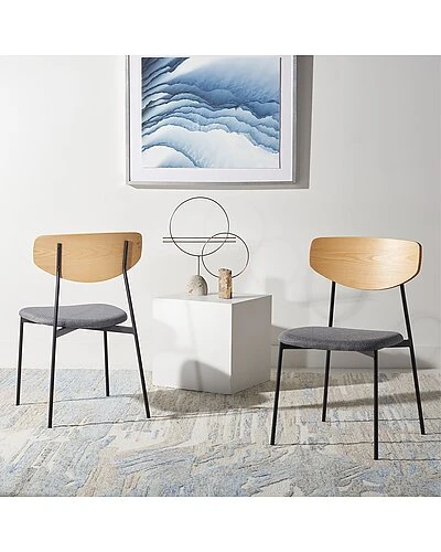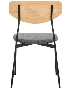 - A perfect fit for those in need of something retro-chic yet utterly contemporary, this Ryker Dining Chair abounds with effortless style. Rykers Mid-Century-inspired oak-finished seat back is marvelously juxtaposed with the clean lines of its black iron frame and plush grey seat cushion. Sold in sets of two.