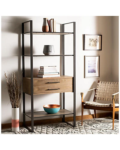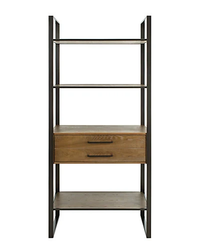- Design details: Tall, dark and handsome, this 4-tier etagere with one drawer is a modern classic. Its bold frame features geometric lines illuminated by a sophisticated gun metal finish. The rustic oak hue of its open shelves and ample storage drawer updates any living room.
