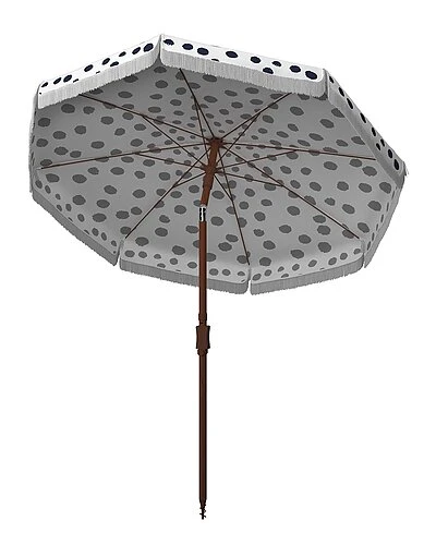 - Penthouse chic flair moves outdoors with this Sydney Umbrella. Sydney makes a bold fashion statement with its black and white polka dot canopy and playful fringe detail, while its practical metal tilt mechanism allows for adjustable shade as the sun changes angles throughout a warm summer day.